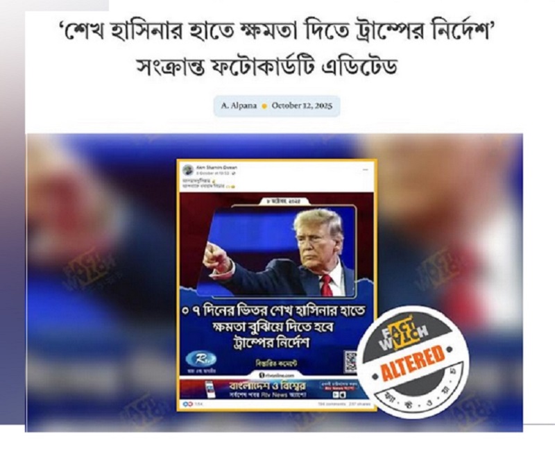 আরটিভি’র ভিন্ন একটি ফটোকার্ড এডিট করে সামাজিক যোগাযোগ মাধ্যমে বিভ্রান্তি ও গুজব ছড়ানোর অপচেষ্টা শনাক্ত করেছে ফ্যাক্টওয়াচ।বাংলাদেশে চলমান গুজব, ভুয়া...