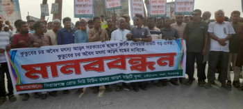 হাটিকুমরুলে মৎস্য আড়তদারদের মানববন্ধন