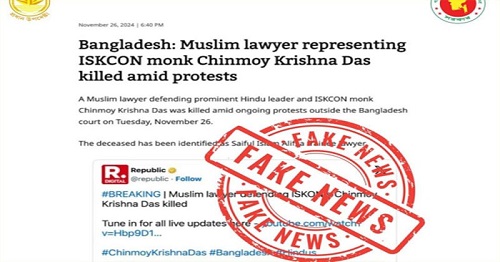 চট্টগ্রামে নির্মমভাবে খুন হওয়া আইনজীবী সাইফুল ইসলাম আলিফকে চিন্ময় কৃষ্ণ দাসের আইনজীবী বলে দাবি করে কিছু ভারতীয় গণমাধ্যম অপপ্রচার চালাচ্ছে...