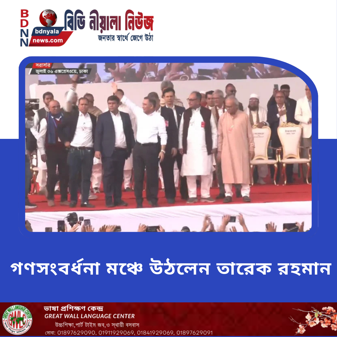 দীর্ঘ ১৭ বছর পর দেশে ফিরে রাজধানীর পূর্বাচলের ‘জুলাই ৩৬ এক্সপ্রেসওয়ে’ (৩০০ ফিটে) এলাকায় পূর্বনির্ধারিত গণসংবর্ধনা মঞ্চে উঠেছেন বাংলাদেশ জাতীয়তাবাদী...