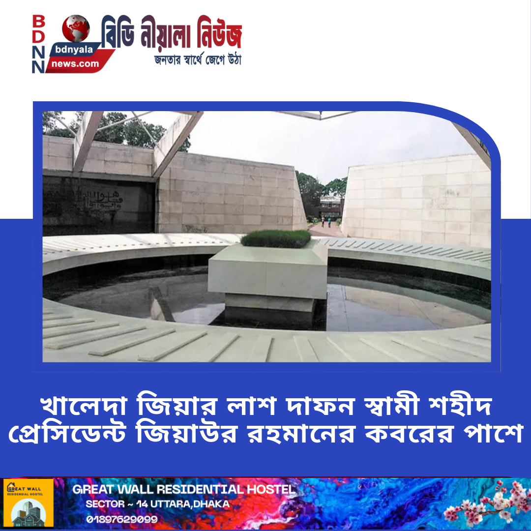 স্বামী শহীদ প্রেসিডেন্ট বীর মুক্তিযোদ্ধা জিয়াউর রহমানের পাশে সাবেক প্রধানমন্ত্রী ও বিএনপি চেয়ারপার্সন বেগম খালেদা জিয়ার লাশ দাফন করা হবে।বুধবার...