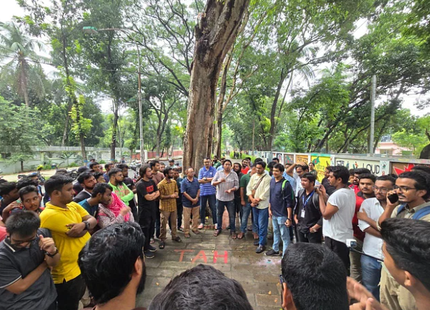 সারা দেশে আন্দোলনের মাত্রা যখন চরমে, তখন কেন্দ্রীয়ভাবে দেয়ালচিত্র আঁকার কর্মসূচি দেওয়া হয়। সেই কর্মসূচিতে অংশ নিতে রংসহ কিছু প্রয়োজনীয়...