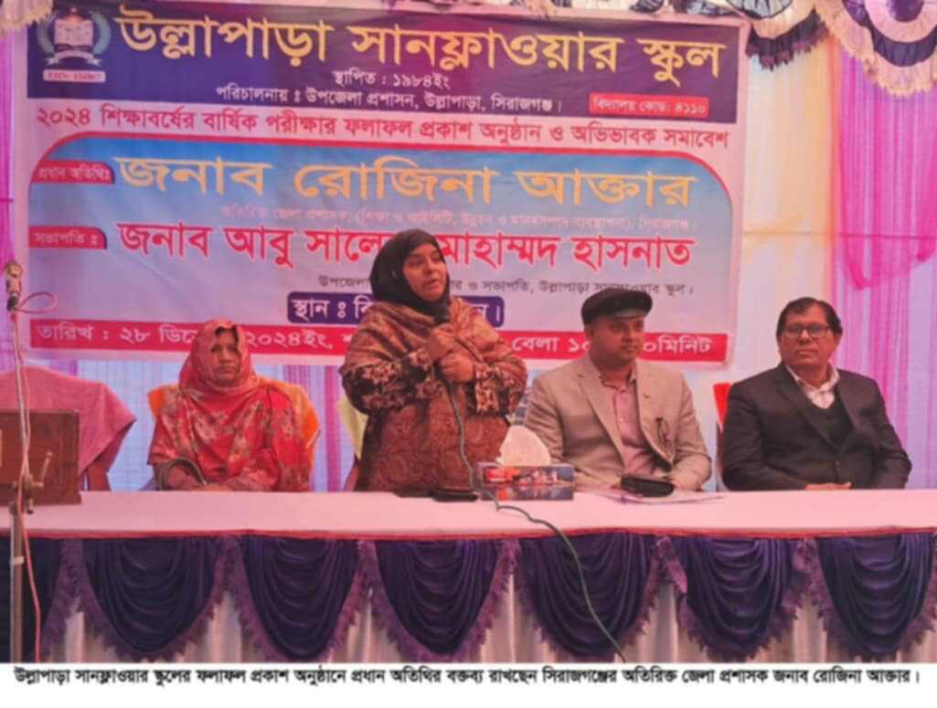 সিরাজগঞ্জ প্রতিনিধিঃ শনিবার ( ২৮ ডিসেম্বর) উল্লাপাড়া উপজেলা প্রশাসন পরিচালিত উল্লাপাড়া সানফ্লাওয়ার স্কুলের ২০২৪ শিক্ষাবর্ষের বার্ষিক ফলাফল প্রকাশ অনুষ্ঠান ও...