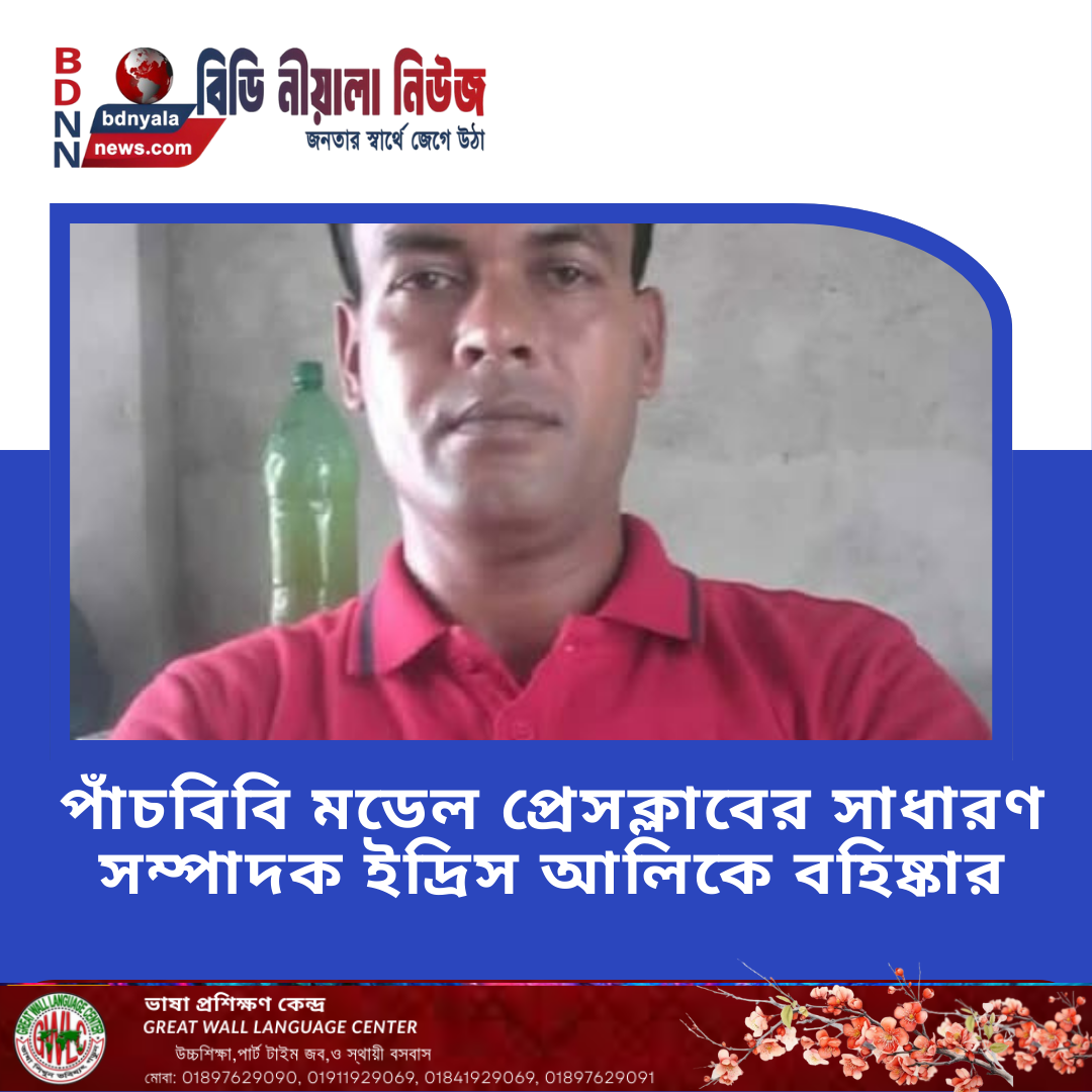 মোঃ আমজাদ হোসেন স্টাফ রিপোর্টার শোকজ নোটিশের জবাব না দেওয়ায় পাঁচবিবি মডেল প্রেসক্লাবের সাধারণ সম্পাদক ইদ্রিস আলীকে বহিষ্কার করা হয়েছে।...