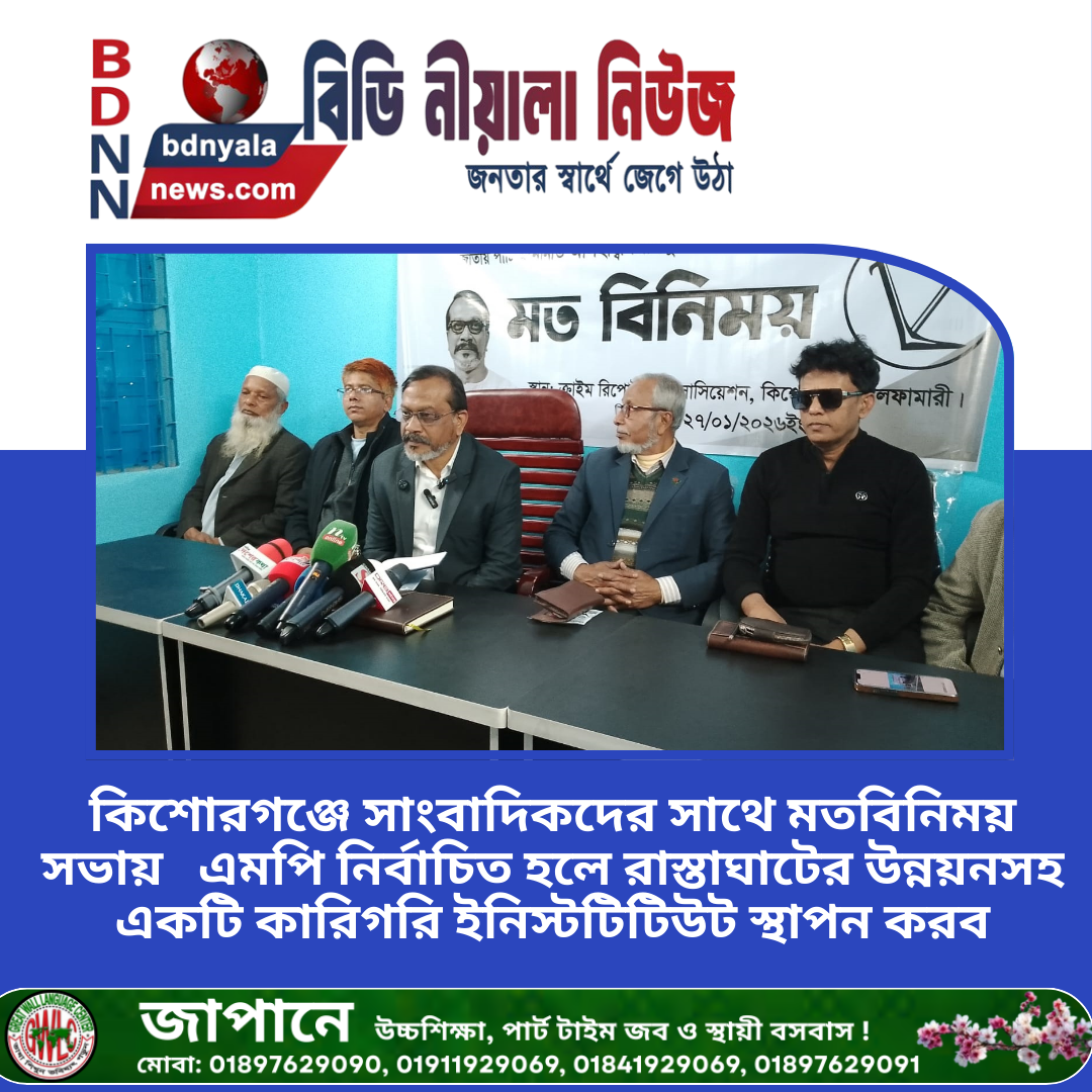 কাওছার হামিদ, কিশোরগঞ্জ(নীলফাসারী): সংবাদাদা\ কিশোরগঞ্জ উপজেলা প্রিন্ট ও ইলেকট্রনিক্স মিডিয়ার সাংবাদিকদের সাথে মঙ্গলবার (২৭ জানুয়ারি) দুপুরে নীলফামারী—৪ সৈয়দপুর—কিশোরগঞ্জ নির্বাচনী এলাকার...