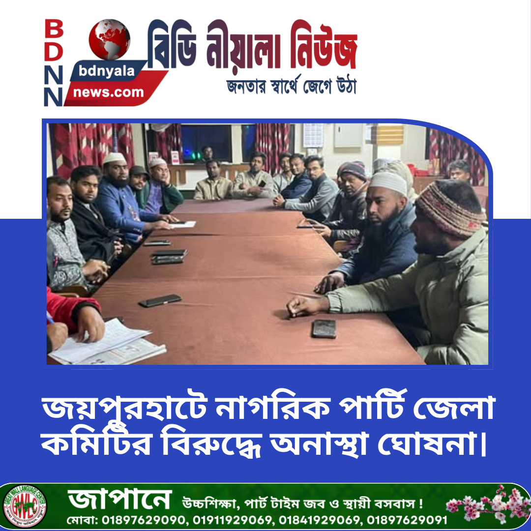 মোঃ আমজাদ হোসেন স্টাফ রিপোর্টার: জাতীয় নাগরিক পার্টি (এনসিপি) জয়পুরহাট জেলা কমিটির বিরুদ্ধে দীর্ঘদিনের জমে থাকা অসন্তোষ অবশেষে প্রকাশ্যে রূপ...