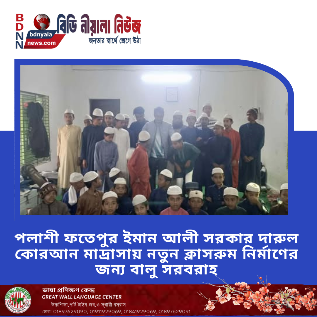 আবুল হাশেম রাজশাহী ব্যুরোঃ রাজশাহীর বাঘা উপজেলার চকরাজাপুর ইউনিয়নের পলাশী ফতেপুর ইমান আলী সরকার দারুল কোরআন মাদ্রাসায় নতুন ক্লাসরুম নির্মাণের...