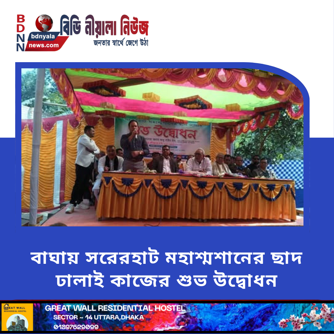 নিজস্ব প্রতিবেদক: রাজশাহীর বাঘা উপজেলার গড়গড়িতে অবস্থিত সরেরহাট মহাশ্মশানের নবনির্মিত ভবনের ছাদ ঢালাই কাজের শুভ উদ্বোধন করা হয়েছে। শনিবার (১৭...