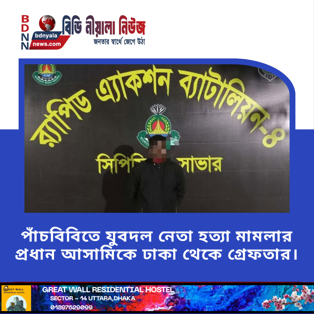 মোঃ আমজাদ হোসেন স্টাফ রিপোর্টার: জয়পুরহাটের পাঁচবিবিতে চাঞ্চল্যকর ইয়ানুর হোসেন (৩২) হত্যা মামলার অন্যতম প্রধান এজাহারনামীয় আসামি গোলাম মোস্তফাকে (৫৫)...