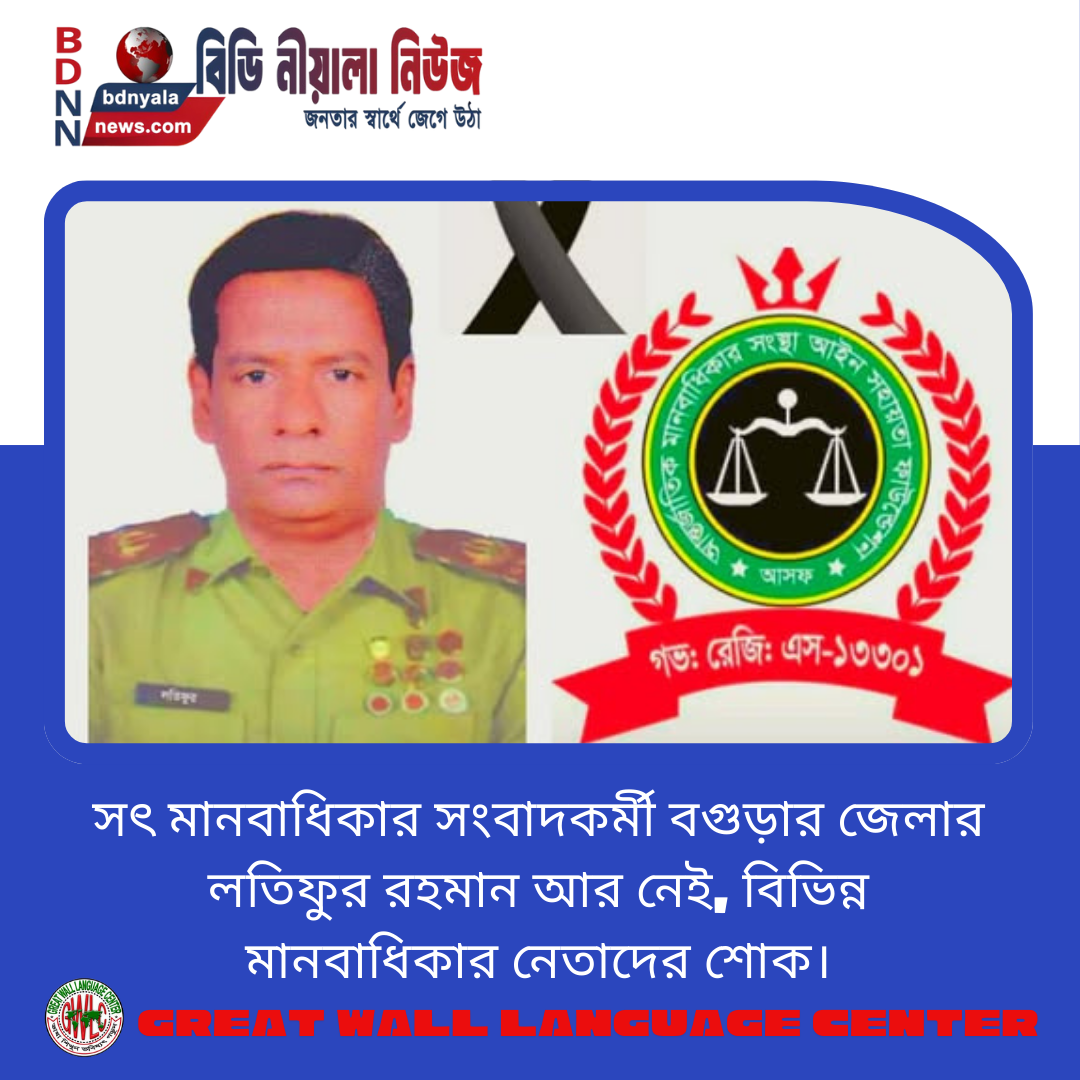 এম ডি বাবুল বিশেষ প্রতিনিধি: বাংলাদেশের বগুড়া জেলার আইন সহায়তা ফাউন্ডেশন আসফ এর সম্মানিত সাধারণ সম্পাদক জনাব লতিফুর রহমান ইন্তেকাল...