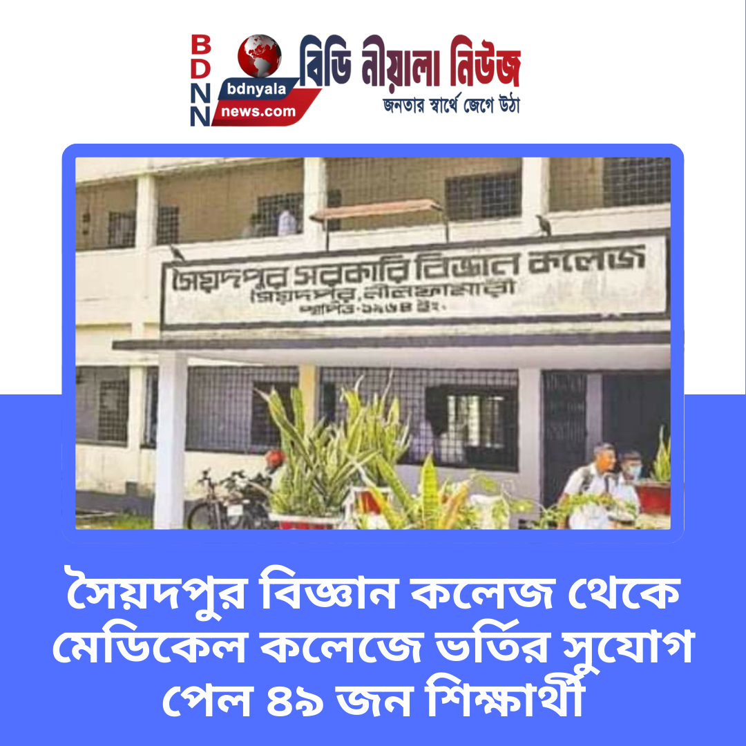 জয়নাল আবেদীন হিরো,নীলফামারী জেলা প্রতিনিধিঃনীলফামারীর সৈয়দপুর সরকারি বিজ্ঞান কলেজ থেকে এবারও মেডিকেল কলেজে ভর্তির সুযোগ পেয়েছেন ৪৯ জন শিক্ষার্থী। গত...
