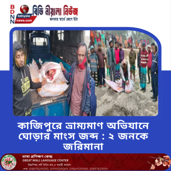 কাজিপুরে ভ্রাম্যমাণ অভিযানে ঘোড়ার মাংস জব্দ...
