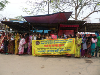 পার্বতীপুরে আদিবাসীদের মানববন্ধন ও প্রতিবাদ সভা