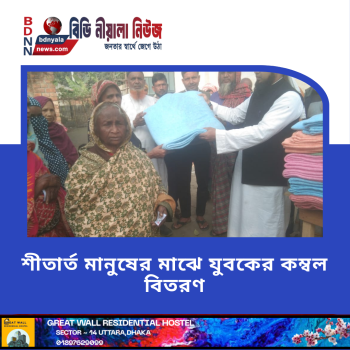 শীতার্ত মানুষের মাঝে যুবকের কম্বল বিতরণ